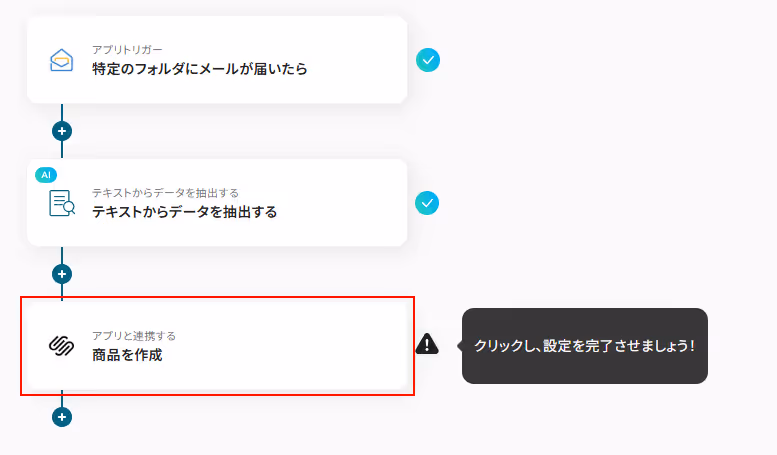 特定の件名や送信元アドレスなど、あらかじめ設定した条件に合致するメールをZoho Mailで受信した場合にのみ、Squarespaceに商品を作成する連携です。