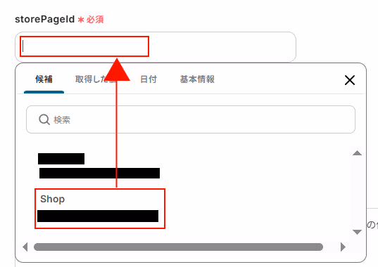 今回はそのまま使用しますが、以下のように入力欄をクリックすることで取得した値から選択することも可能です。