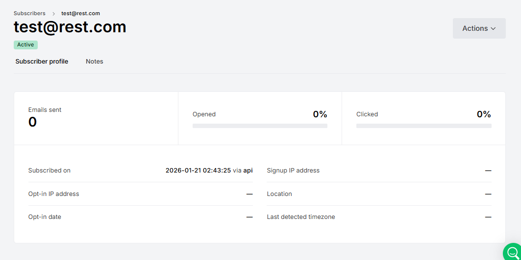 テストが成功すると、MailerLiteのSubscriberが自動で作成されるので確認してください。
