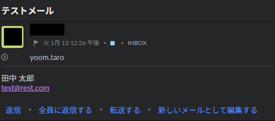 ここまで設定できたら、Zoho Mailの指定のフォルダにテスト用のメールを送信しましょう。 (今回の連携では、MailerLiteに新しいサブスクライバーのメールアドレスを自動登録します。そのため、架空の情報で問題ありませんので、必ずメールアドレスを記載してください。 ) 今回は例として、下記画像のように設定しメールを送信してみました!