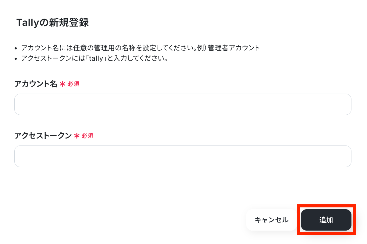 アカウント名とアクセストークンを記入して「追加」ボタンを押します。