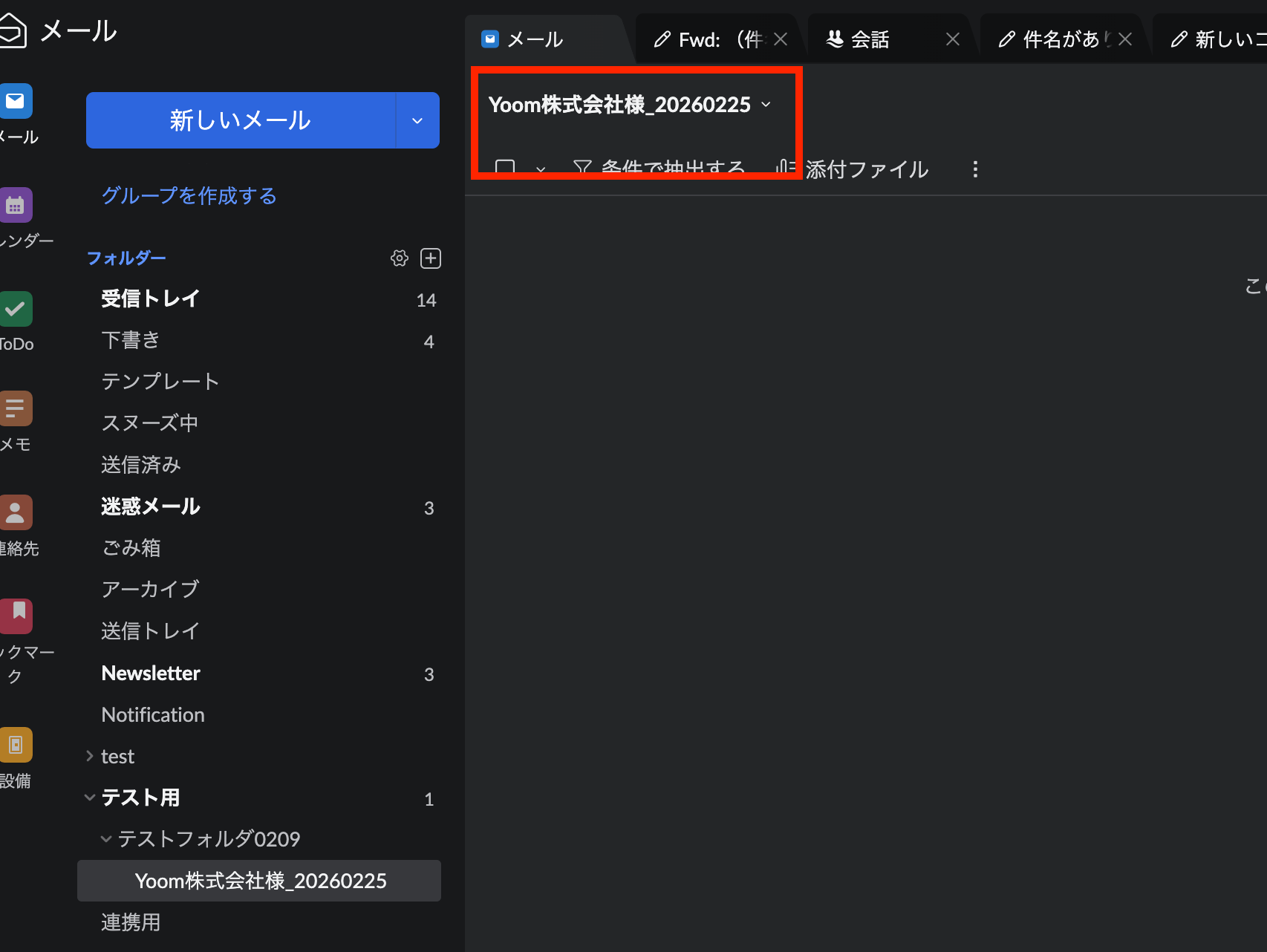 テスト成功で、フォルダが作成されています。Zoho Mailを確認してみましょう!