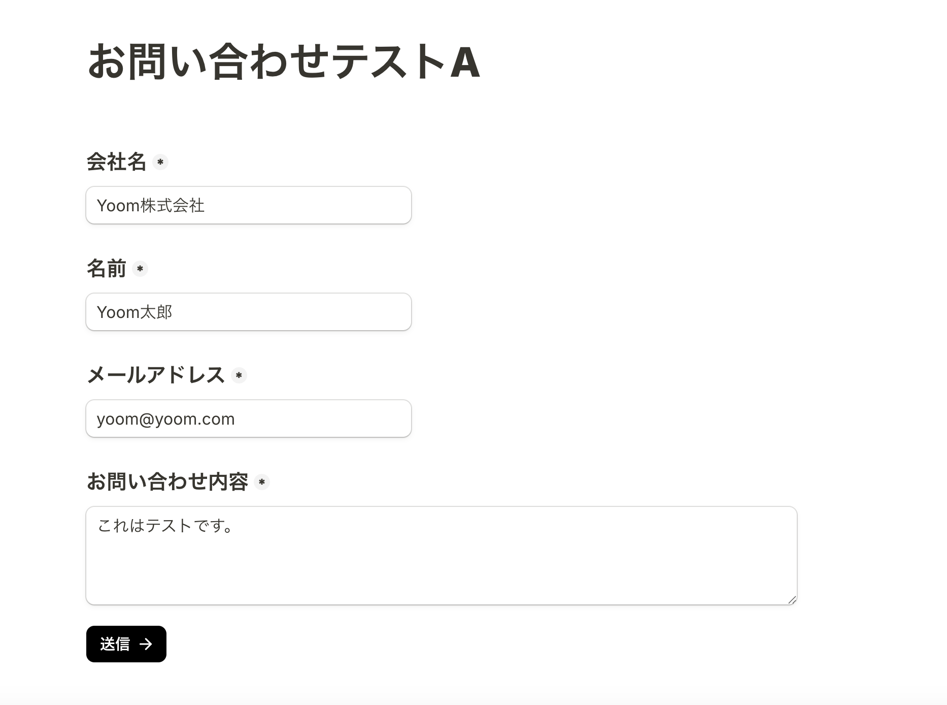 Tallyにテスト用のフォームを作成します。 今回は以下のフォームをテストとして作成しました。