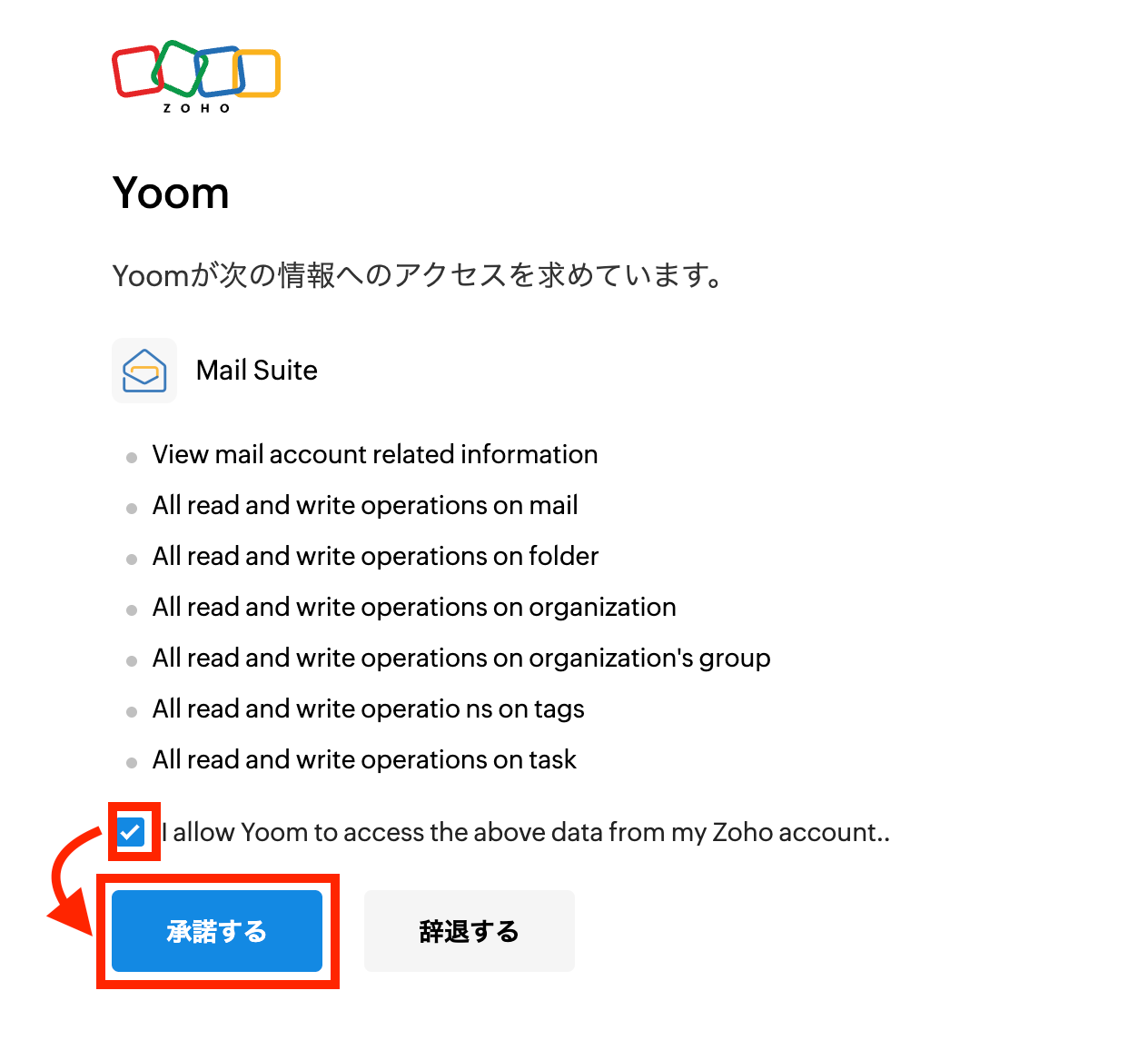 チェックマークにチェックを入れて「承諾する」ボタンを押します。