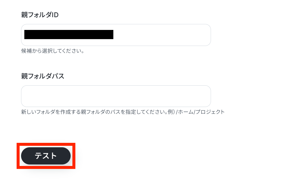 親フォルダIDを任意で設定して、設定が終わったらテストを実行します!
