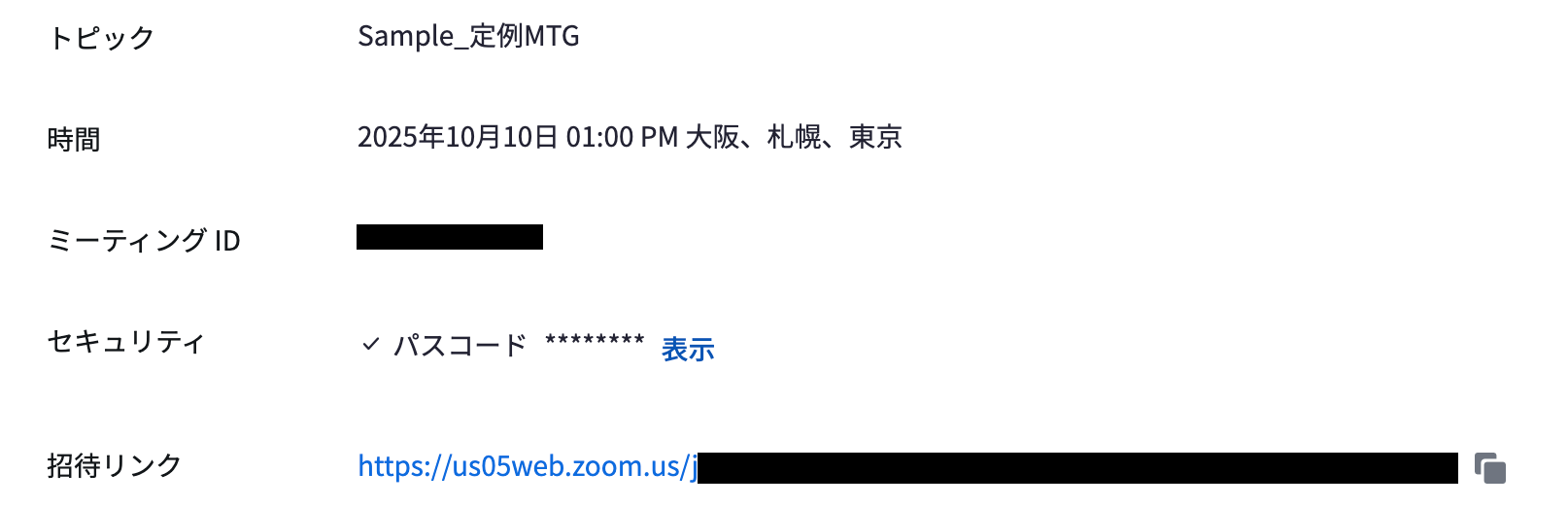 テストなので、「Sample会議」や「テストMTG」といった架空の内容でOKです!