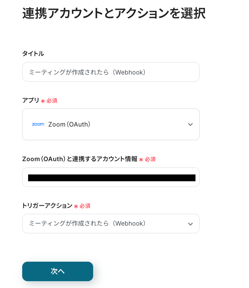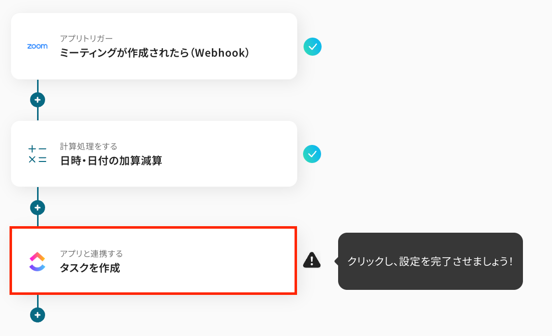 続いて、Zoomに作成されたミーティング情報を基に、ClickUpにタスクを自動作成する設定を行います。