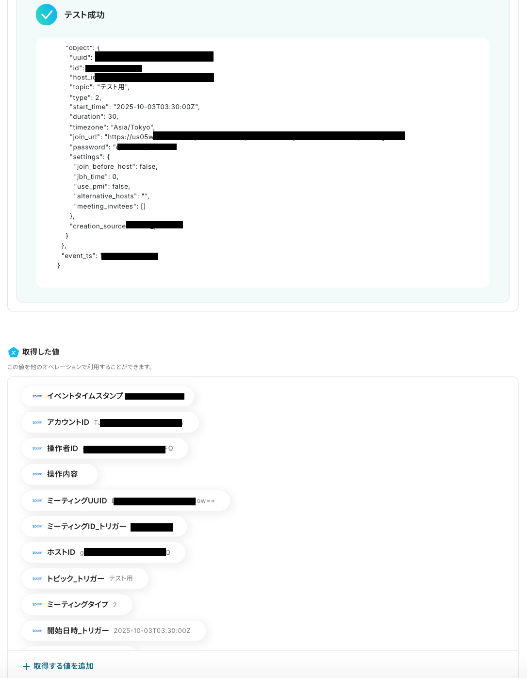 - 「Zoomミーティングが終了したら」トリガーで録画URLを取得