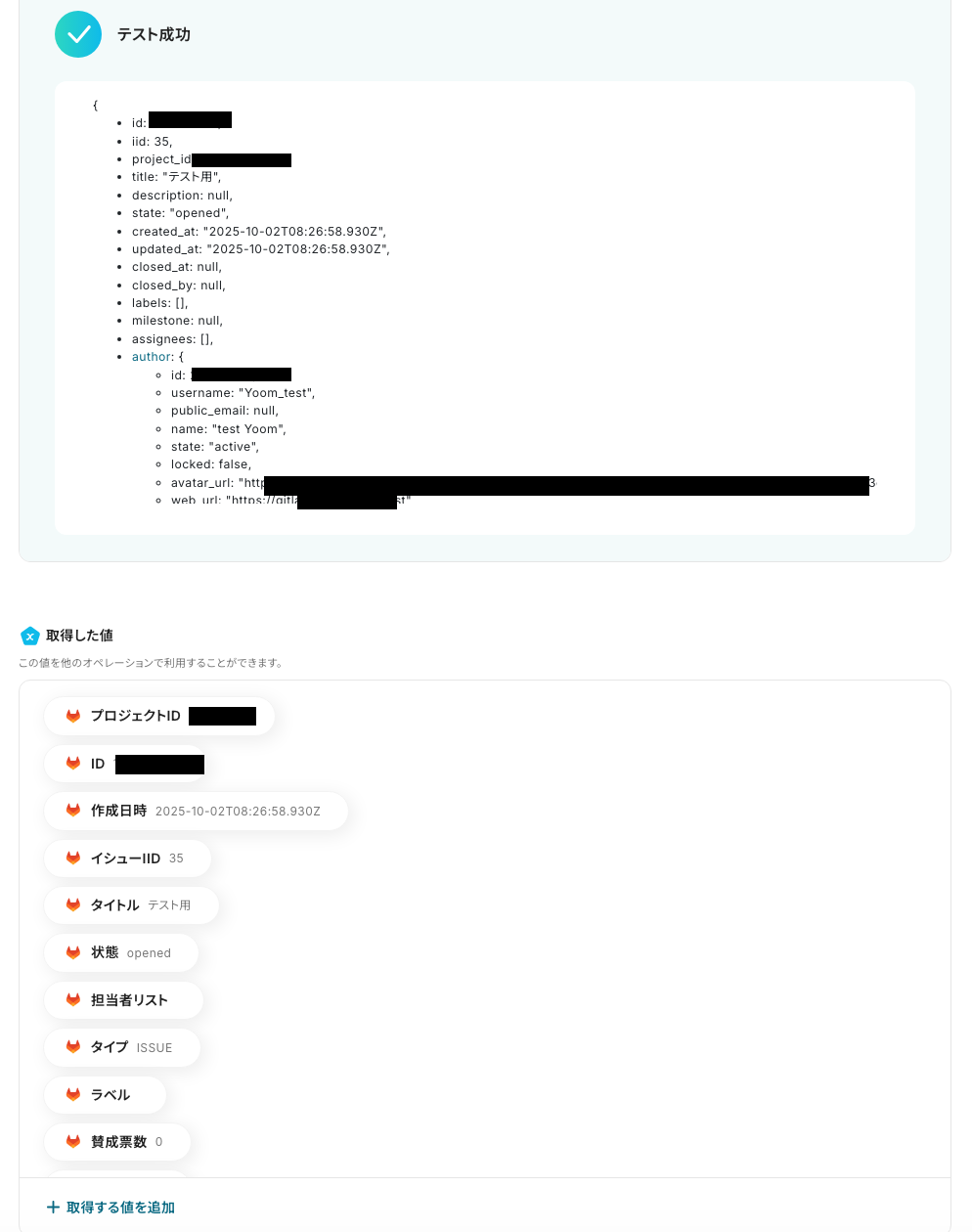 ここでは、先ほど取得したデータをGitLabのイシューに追加する設定を行います。