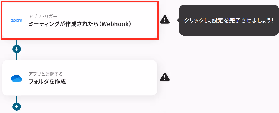 「ミーティングが作成されたら(Webhook)」をクリック。