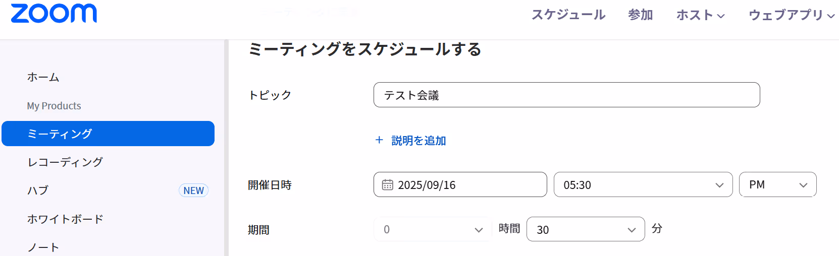 A:今回の連携にはmeeting:write:meeting:adminなどの権限が必要です。詳しくはZoom(OAuth)のマイアプリ登録方法の7・8の項目をご参照ください。