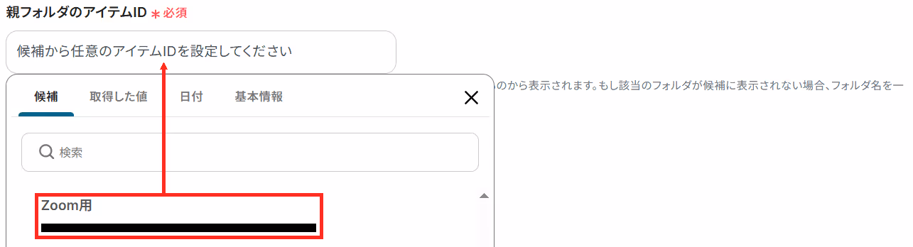 同様に「親フォルダのアイテムID」も選択しましょう。