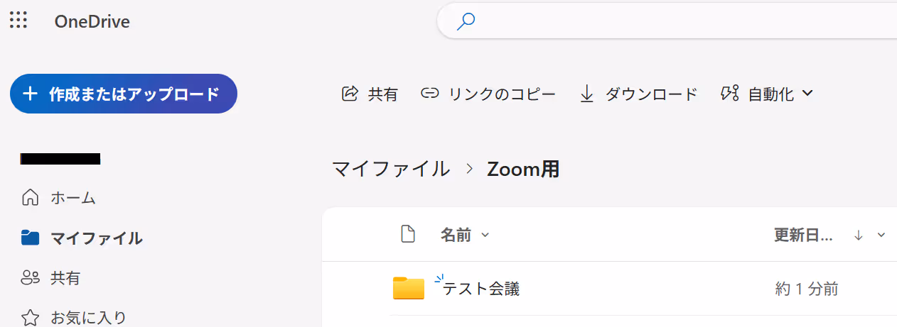 OneDriveの親フォルダ直下に、Zoom会議用のフォルダが作成されました!