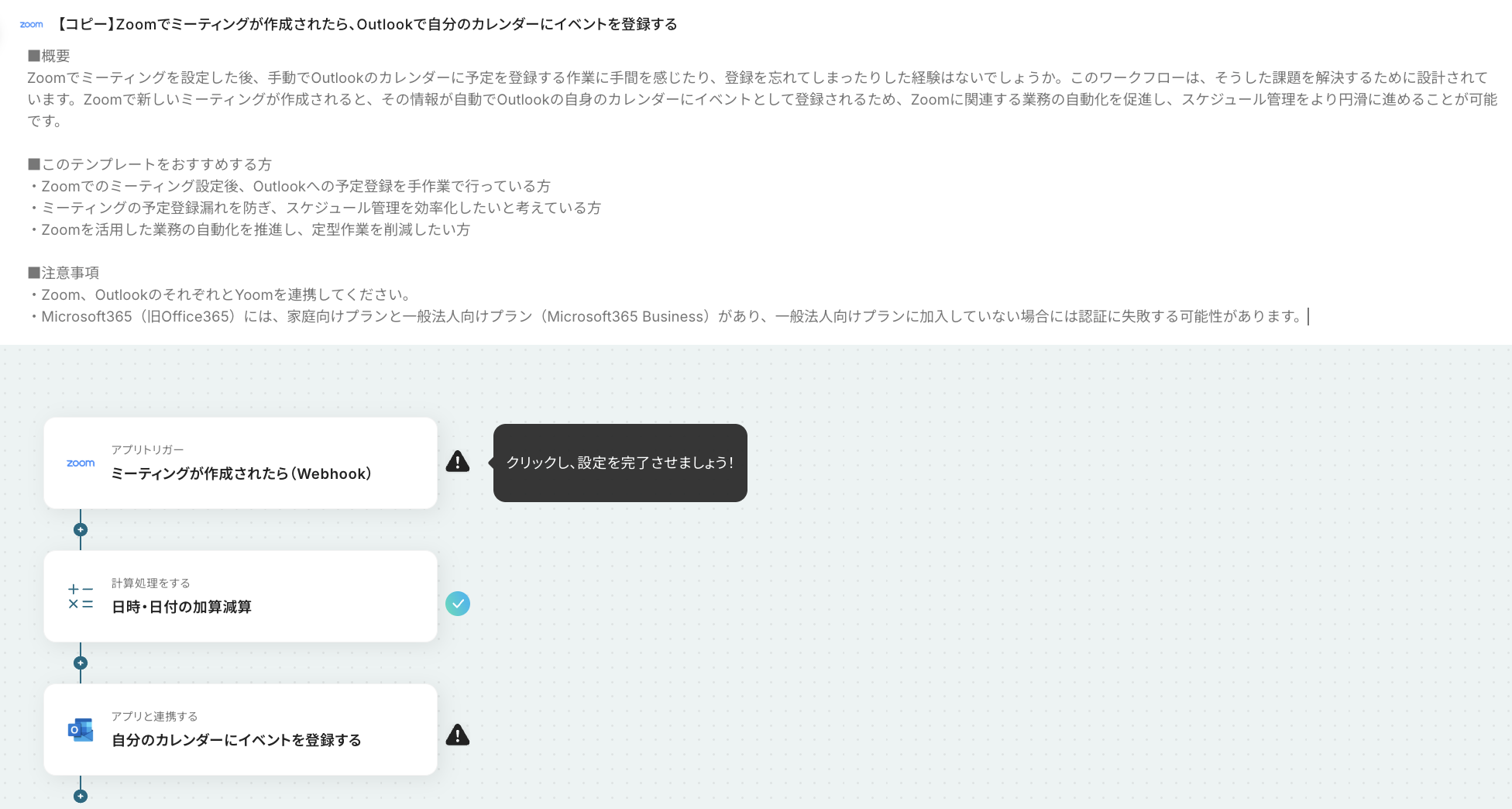 それではここから代表的な例として、「Zoomでミーティングが作成された際に、その情報をOutlookのカレンダーにイベントとして自動で登録する」フローの設定手順を解説していきます!