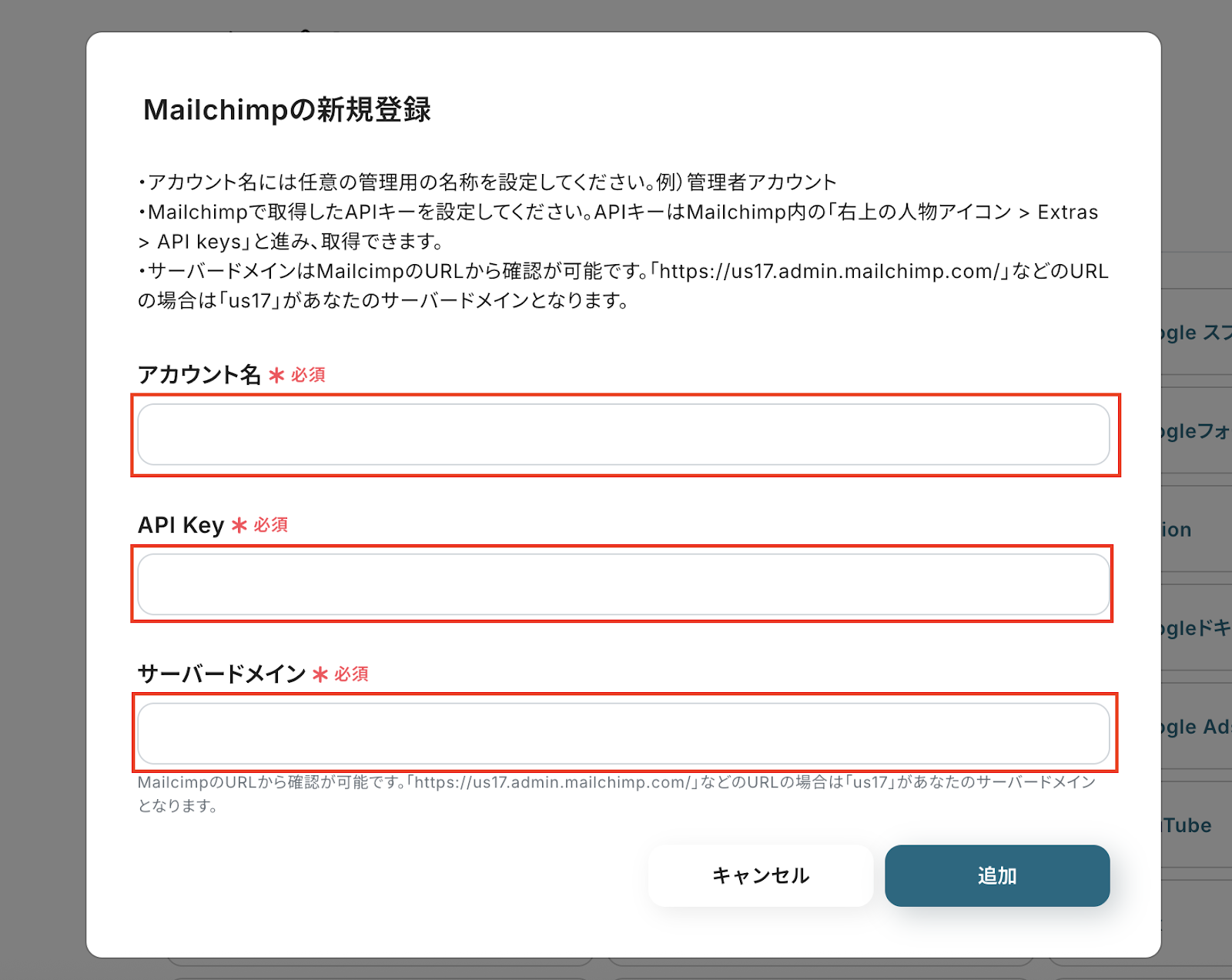 - MailchimpとGoogle スプレッドシートのマイアプリ登録