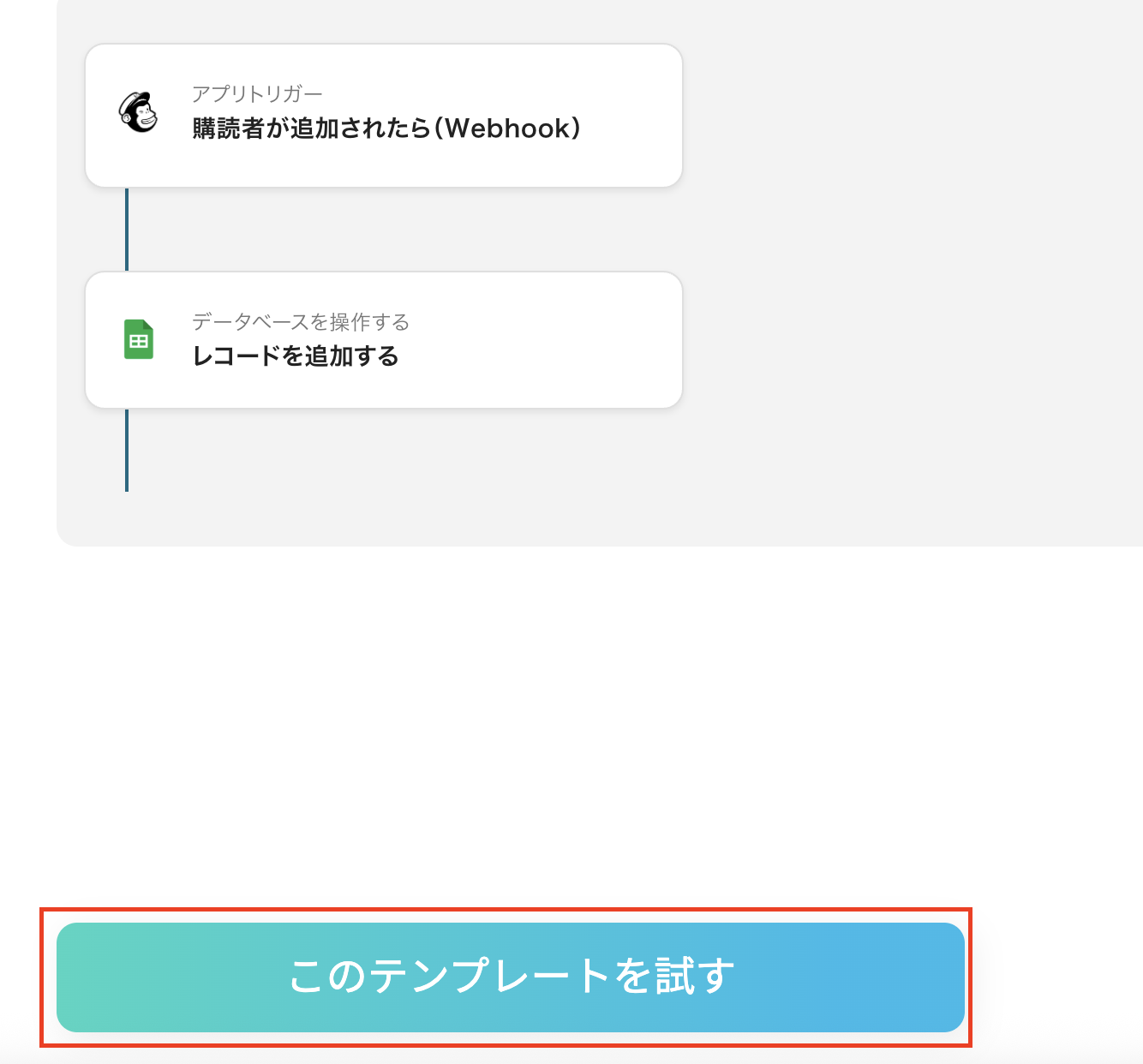 それではここから一例として、Mailchimpに新しいコンタクトが登録された際に、その情報をGoogle スプレッドシートの指定したリストに自動で追加するフローを解説していきます!