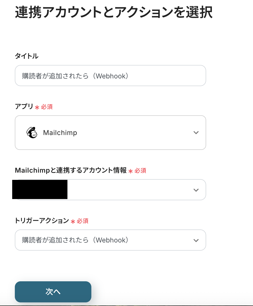 - Mailchimpのトリガー設定およびGoogle スプレッドシートのアクション設定