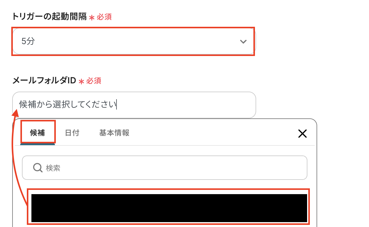 メールフォルダIDは候補から選択します。