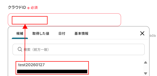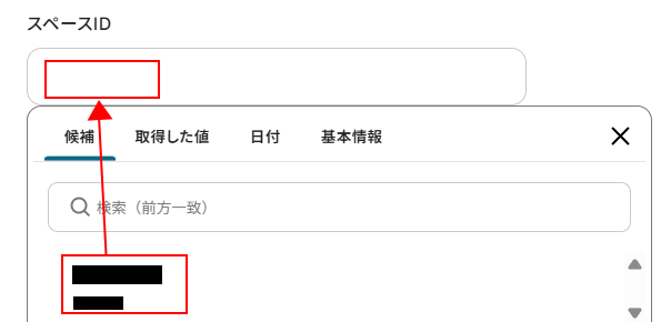 こちらも入力欄をクリックし、表示された候補の中から使用したいものを選択します。