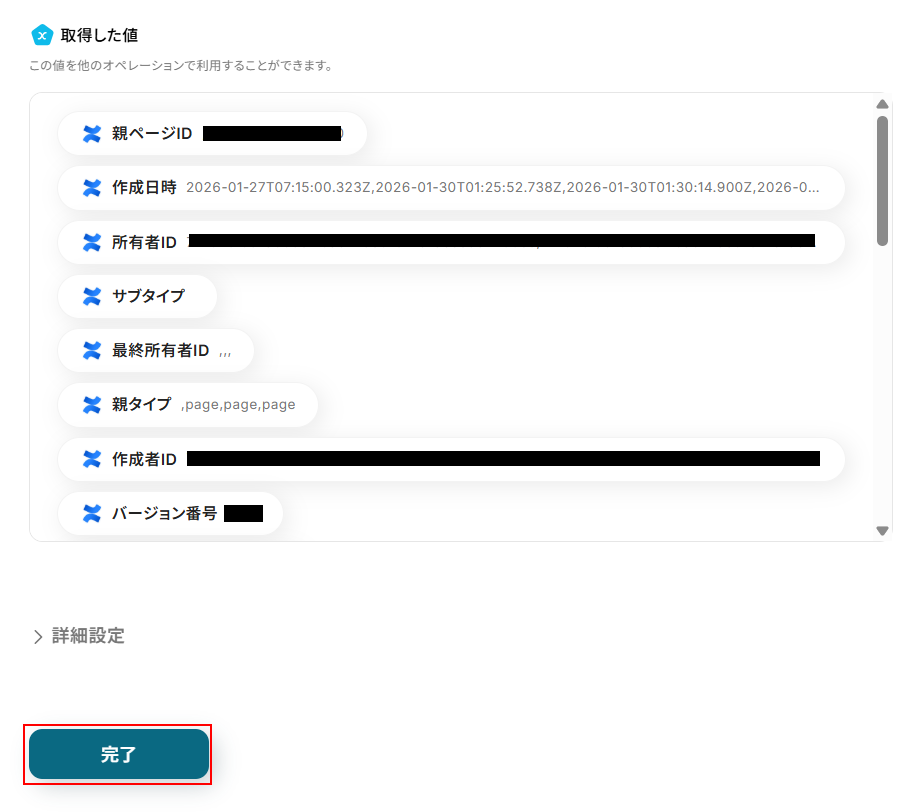 ステップ4でタイトルやステータスなどの項目を設定することで、取得するページを絞り込めます。