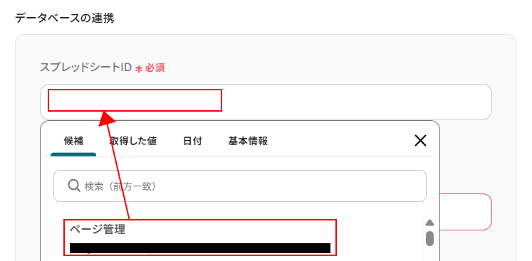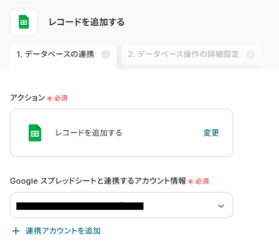 - Google スプレッドシートにレコードを追加する際に、出力先となる任意のスプレッドシートIDやシート名を設定してください。