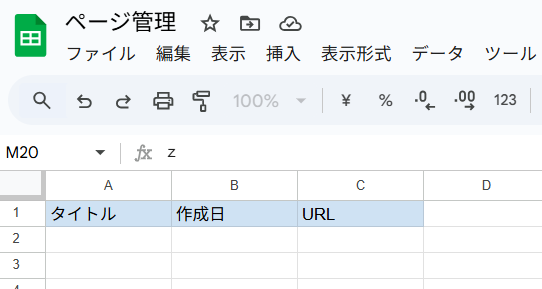 まずは情報を入力するためのGoogleスプレッドシートを用意しておく必要があります。