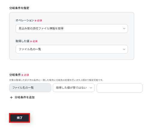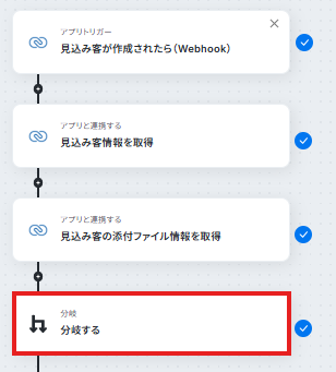 「+」から「分岐する」オペレーションを追加し、条件設定をしてください。