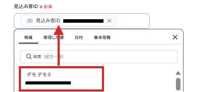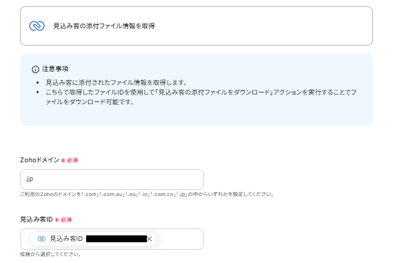 ステップ3と同様にZohoドメインを入力し、見込み客IDを選択します。
