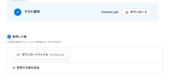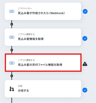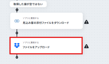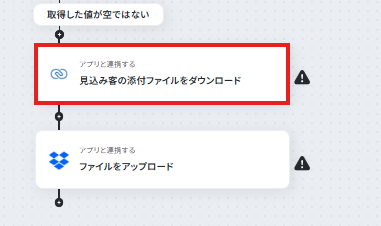 フローに戻り、「見込み客の添付ファイルをダウンロード」のアイコンをクリックします。