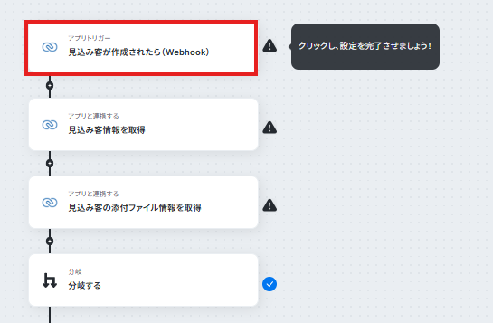 ここで、Webhookとなる「見込み客の登録」を行います。