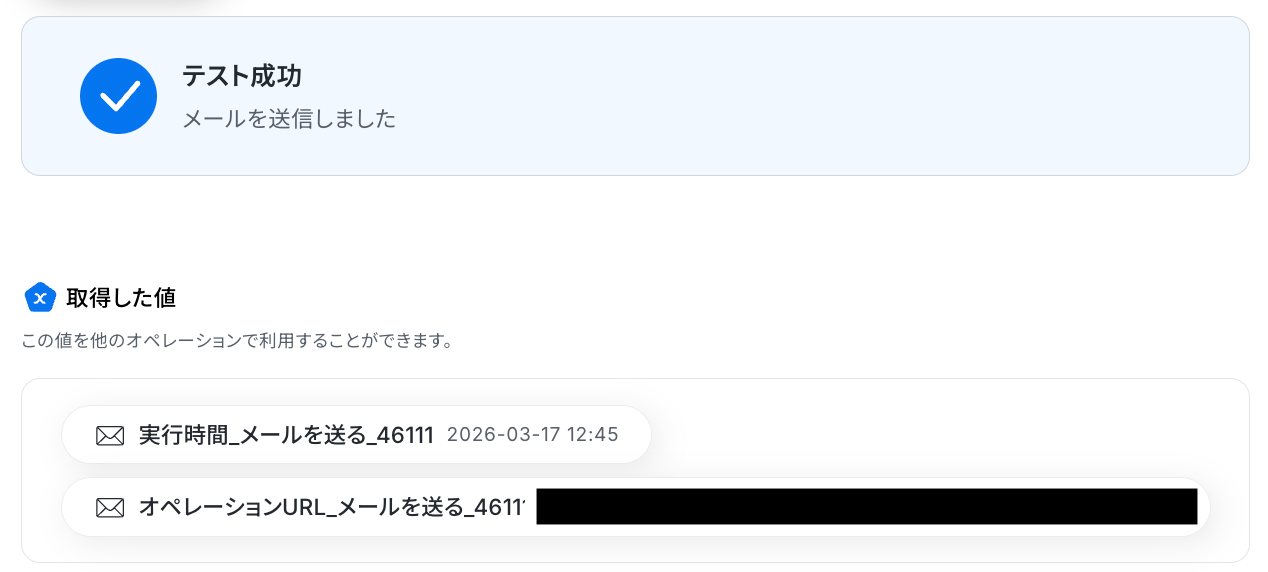 入力欄をクリックすると前のステップで取得した値が一覧で表示されるので、対応する項目に正しくマッピングしましょう。