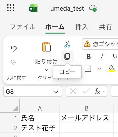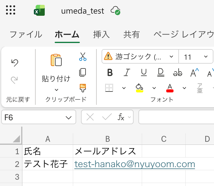 テストが成功したらMicrosoft Excelの画面を開き、実際にレコードが更新されているかを確認してみましょう。 今回は下記のとおり更新されていました!