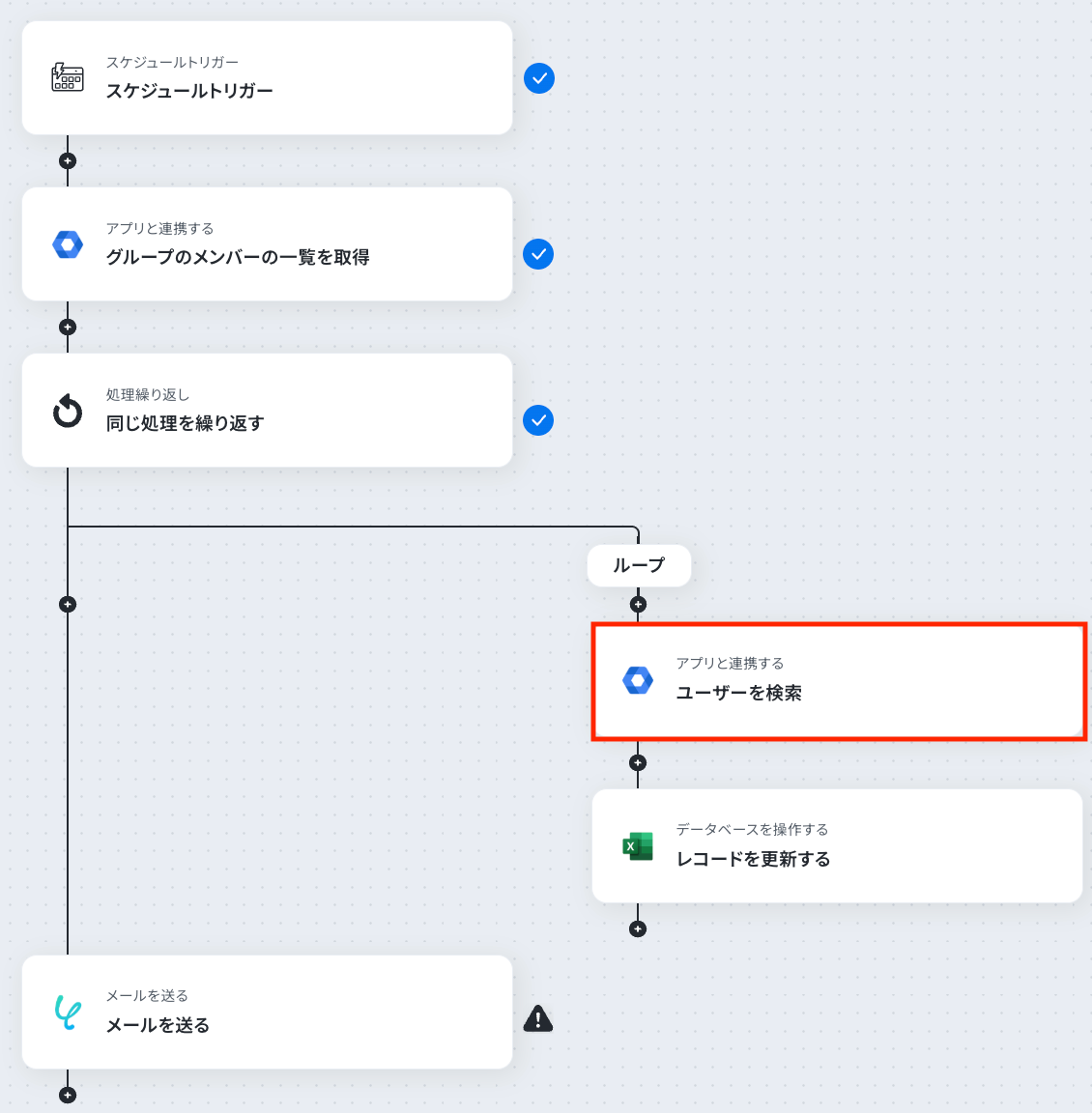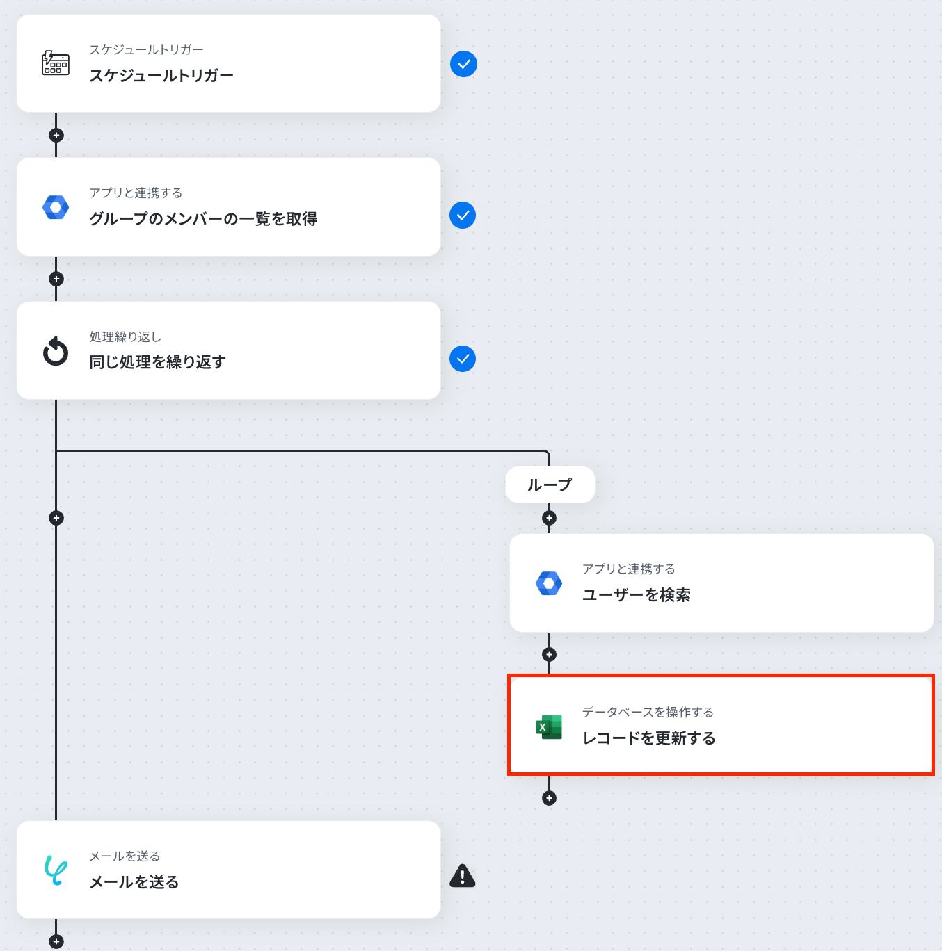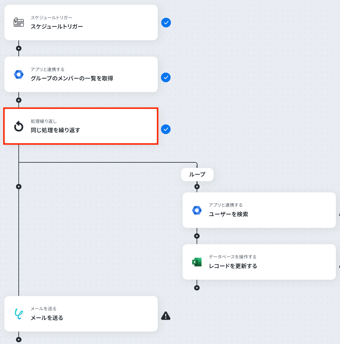 同じ処理を繰り返す設定およびGoogle Workspaceのアクション設定