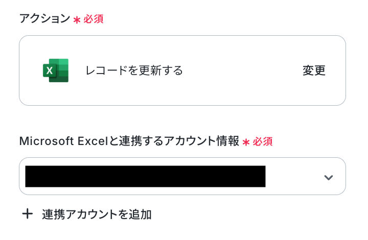 ステップ7:Microsoft Excelでレコードを更新 いよいよ最後の設定です! 前のステップで取得したユーザー情報を利用して、Microsoft Excelのレコードを更新しましょう。