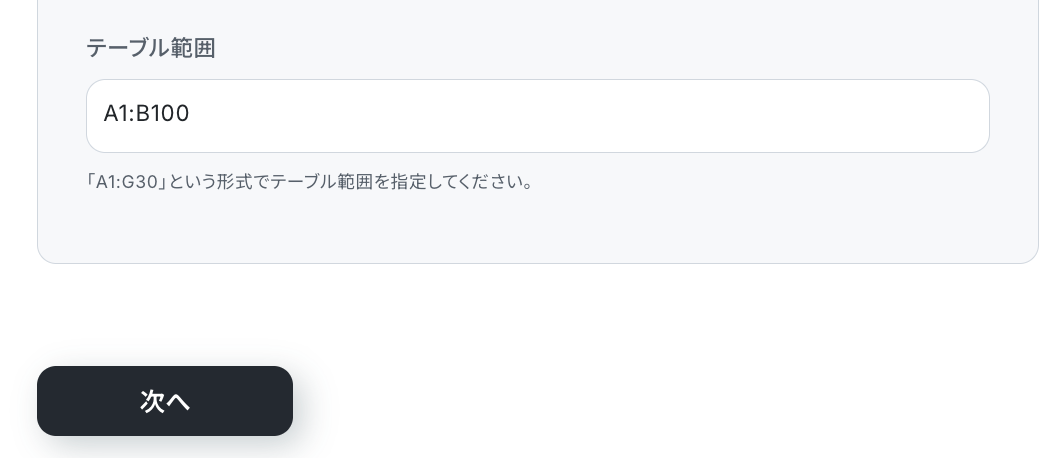 テーブル範囲の設定に関しては原則Google スプレッドシートと同様となるため、こちらのヘルプページをご確認ください。