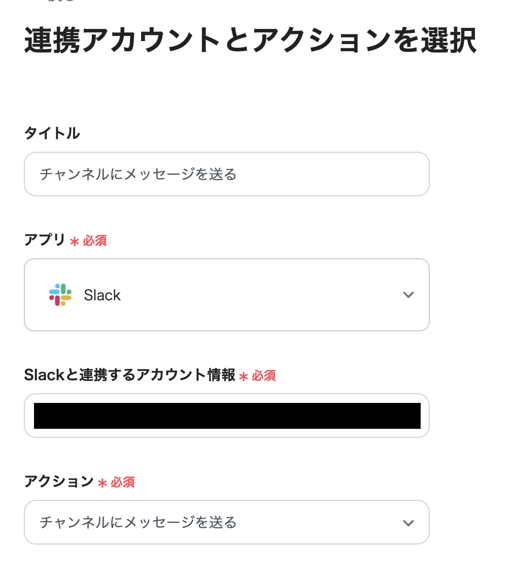 「アクション」:「チャンネルにメッセージを送る」を選択