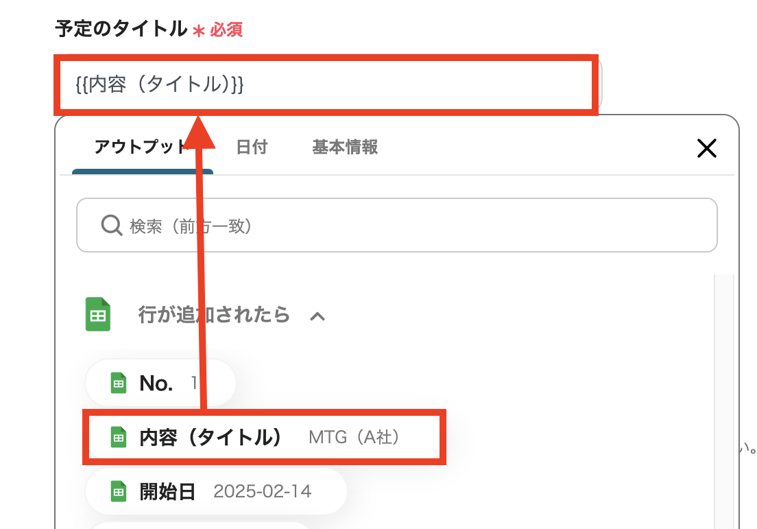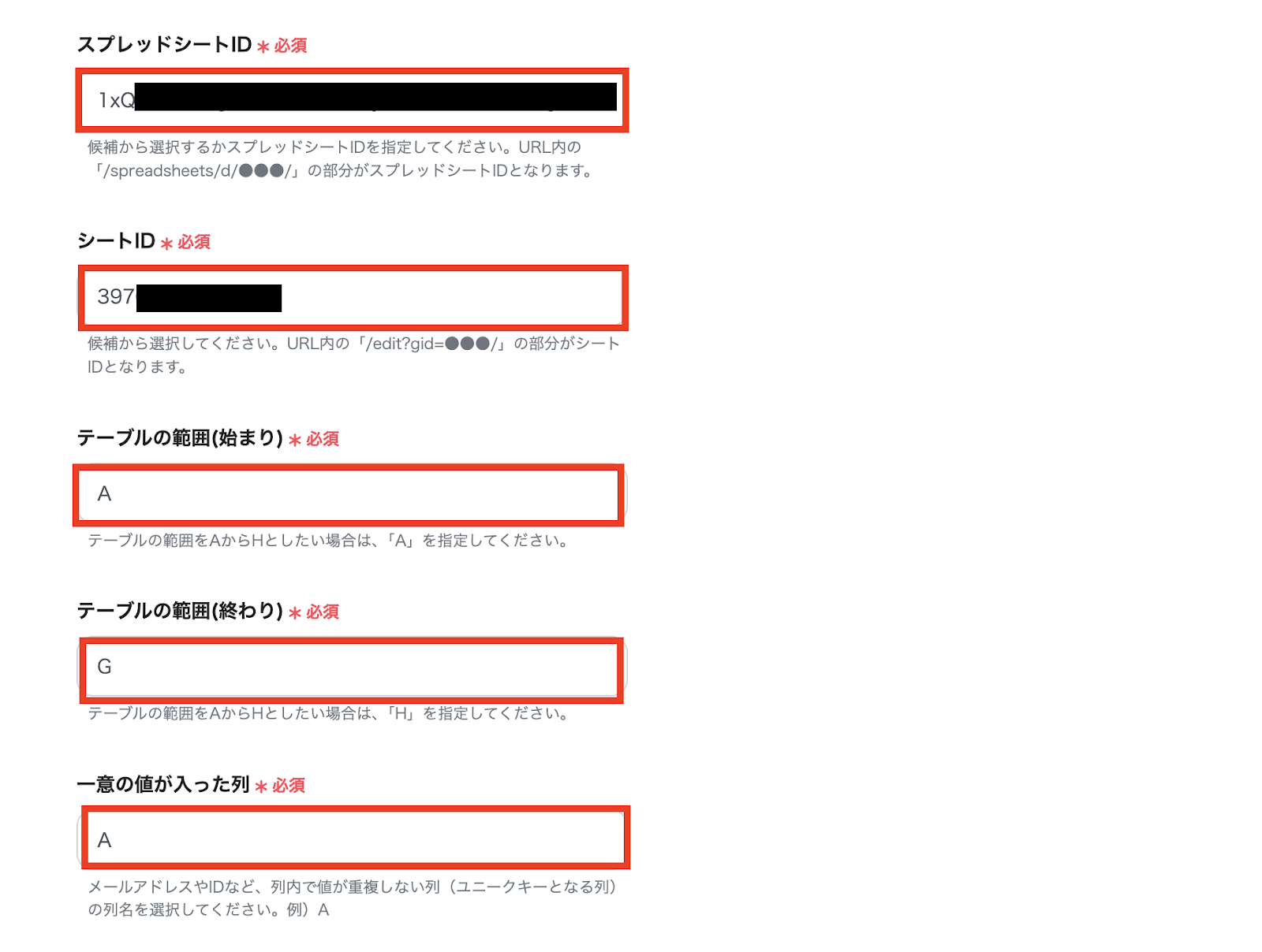 入力する際は、ステップ3で設定したGoogle スプレッドシートのアウトプットを活用しましょう!