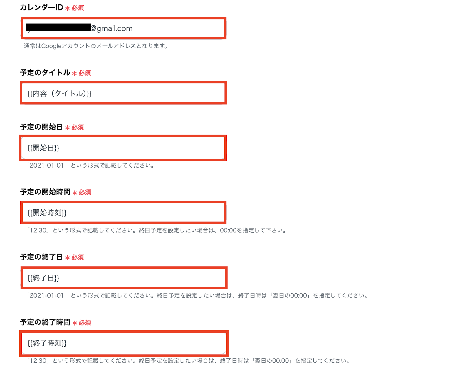 フォームトリガーとGoogleカレンダーの設定は全く同じです!