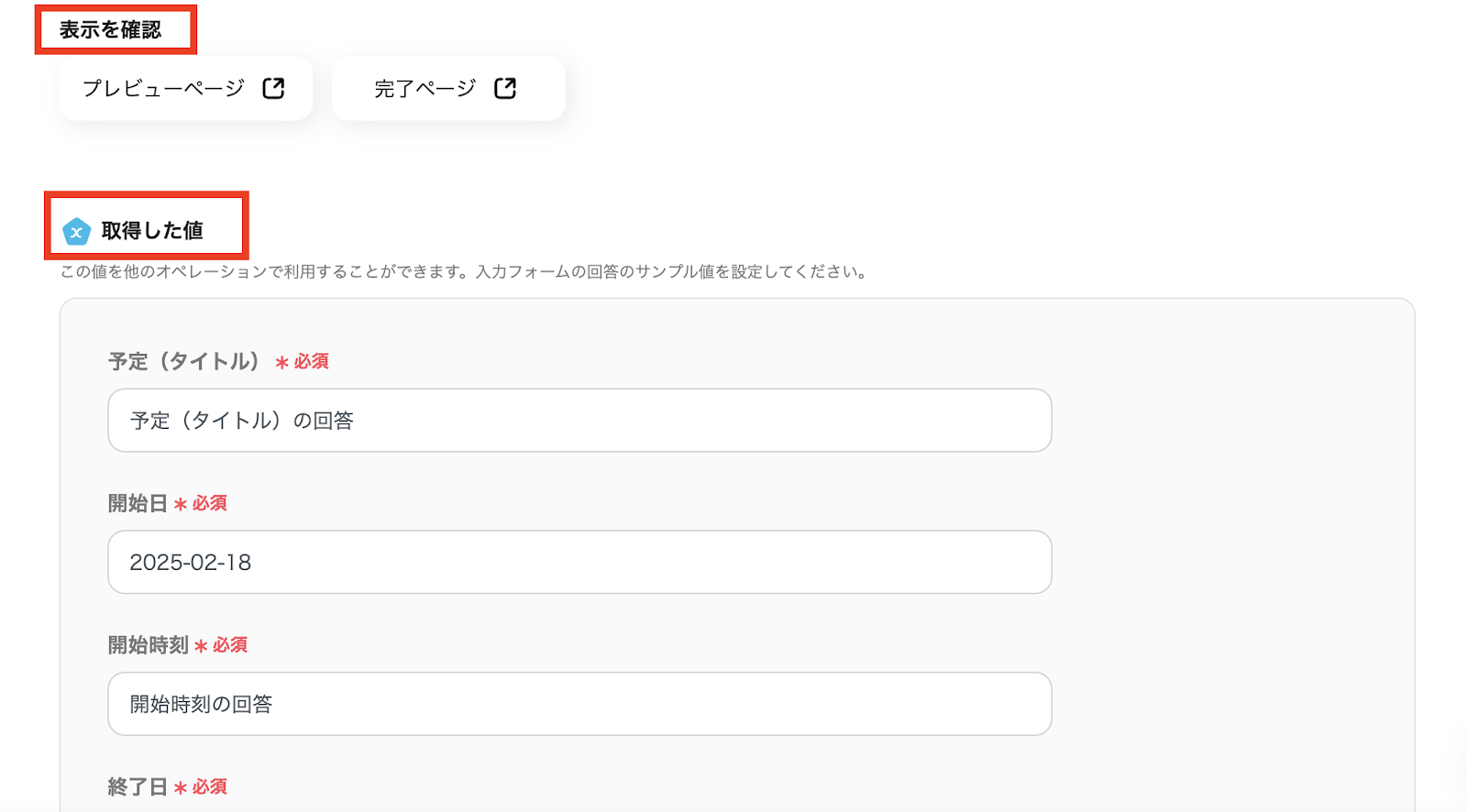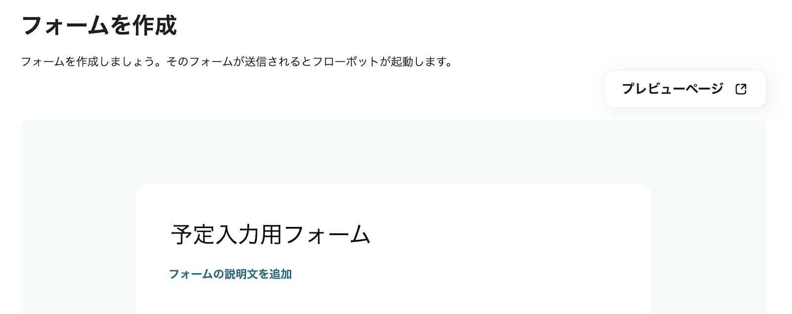 フォーム作成後は、「プレビューページ」と「完了ページ」を確認します。