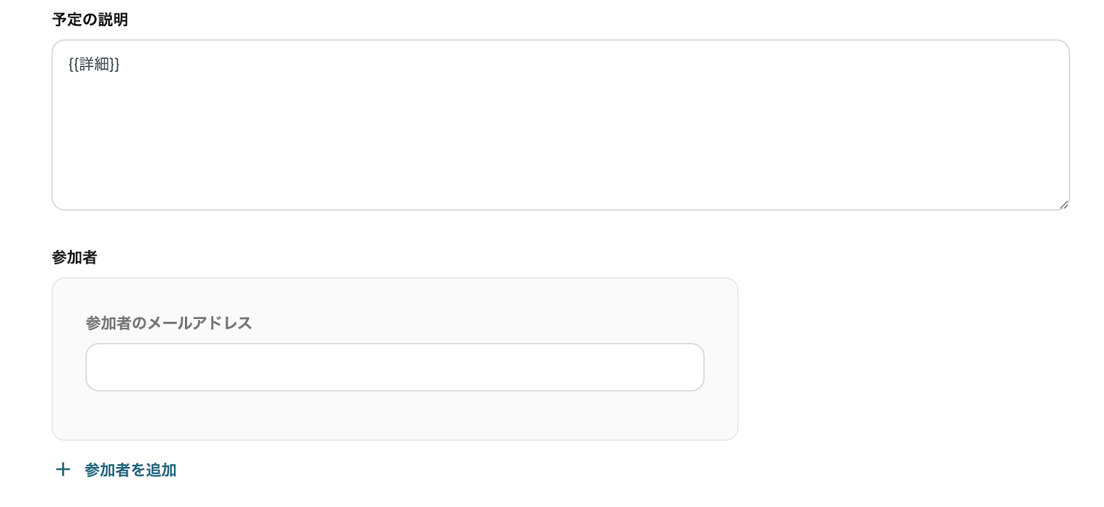 「予定の説明」と「参加者」も必要に応じて、入力していきます。