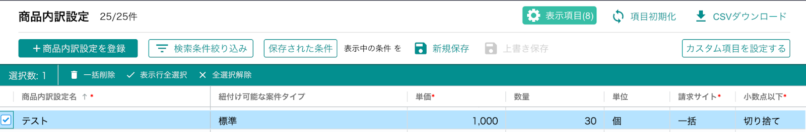 テストが成功したらMazricaの画面を開き、実際に商品内訳設定が登録されているかを確認してみましょう。