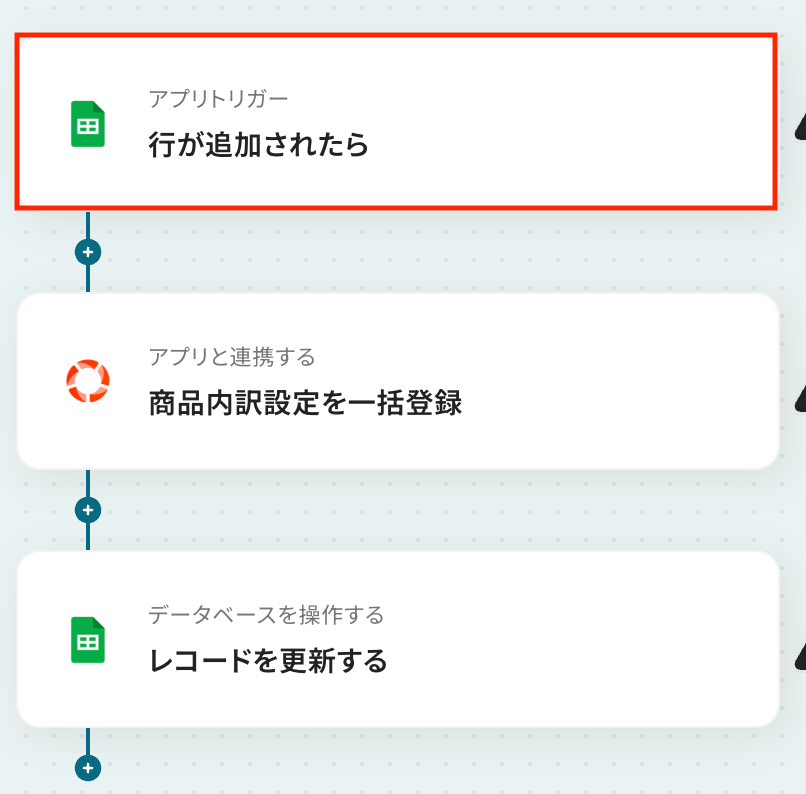 それではここから代表的な例として、Google スプレッドシートに新しい商品情報が追加されたら、Mazricaに商品内訳設定として自動で登録するフローを解説していきます!