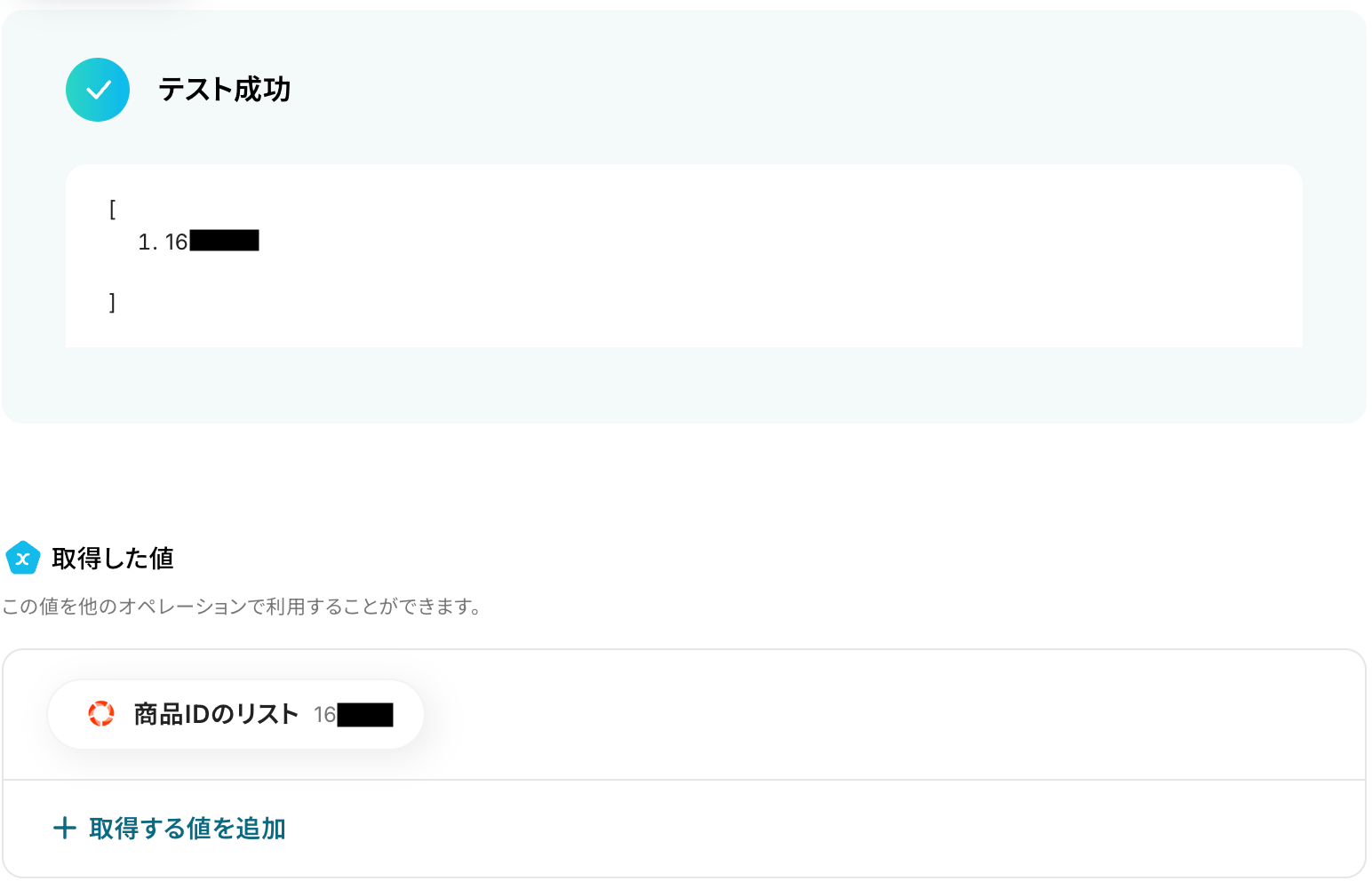 以下の画像の取得した値は、後続のステップで利用可能です。