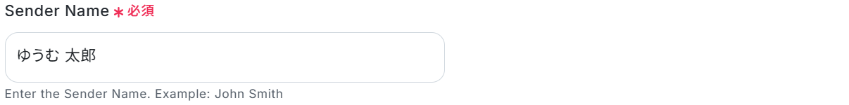 次に、任意のSender Name (送信者名)を入力しましょう。 この名前で送信されます。