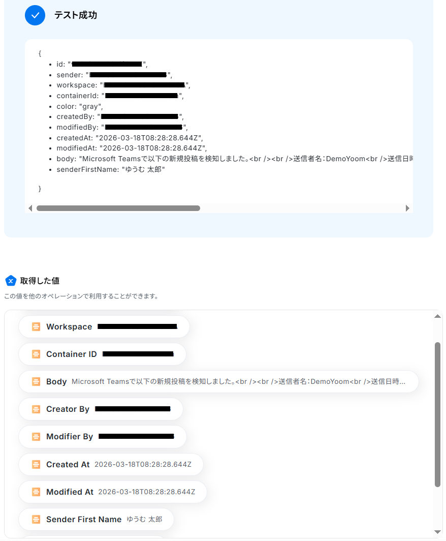 最後に、Yoomの設定画面に戻ってテストしてください。