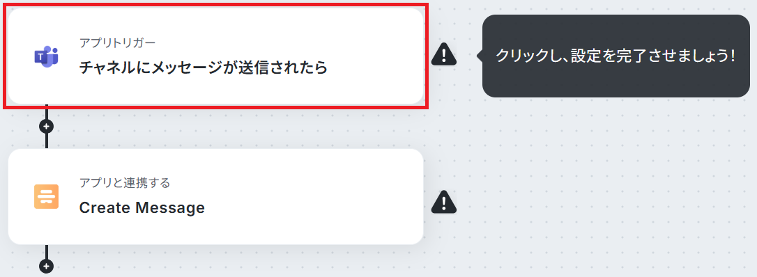 ステップ3:Microsoft Teamsのトリガー設定 Microsoft Teamsの投稿内容を取得します。 「チャネルにメッセージが送信されたら」をクリックしましょう。