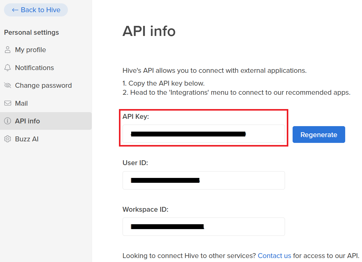 次に、Personal settings のAPI info タブからAPI Keyを発行しましょう。