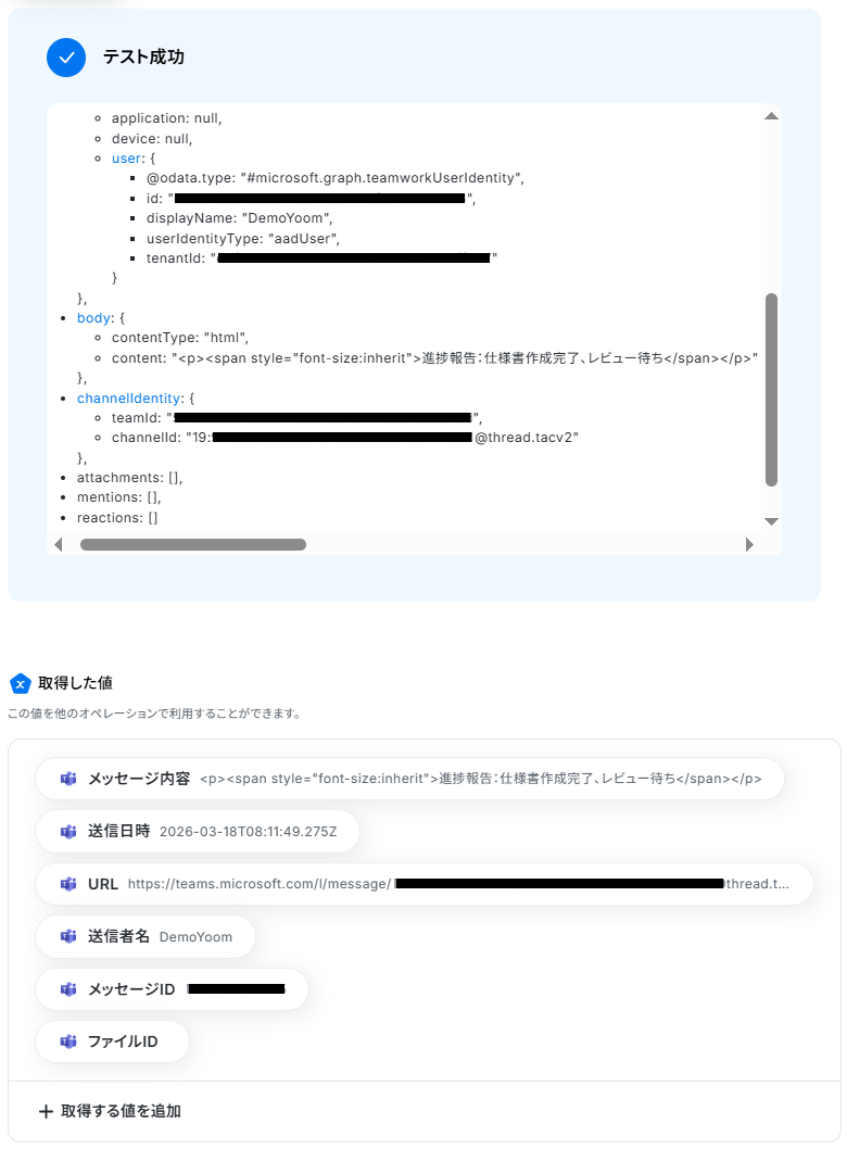 ※以下のように取得した値を設定することで、トリガーが実行されるたびに最新の投稿内容を反映できます。