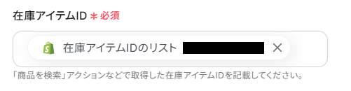 在庫アイテムIDを設定します。 こちらにはデフォルトで取得した値の在庫アイテムIDのリストが設定されています。