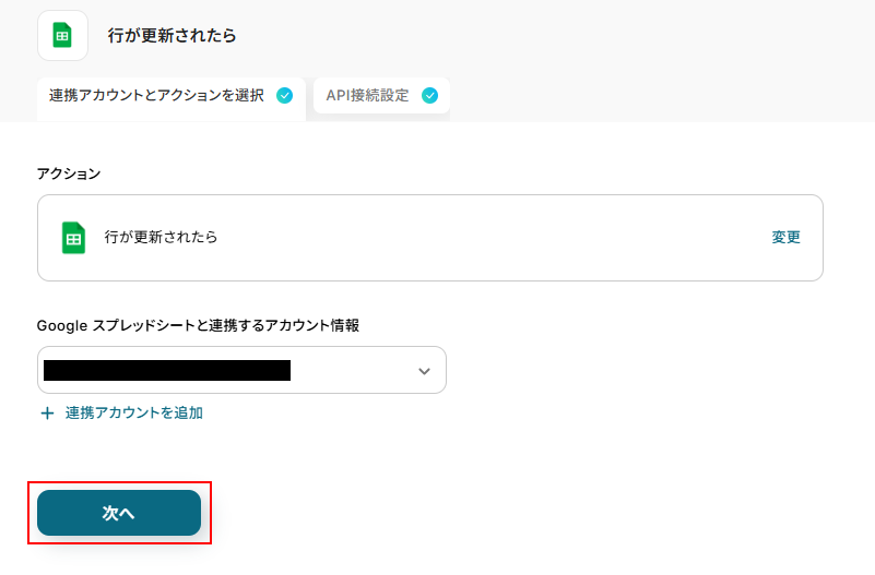 ステップ3:Google スプレッドシートの行が更新された際の設定